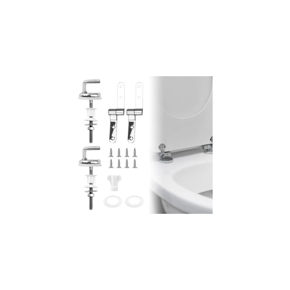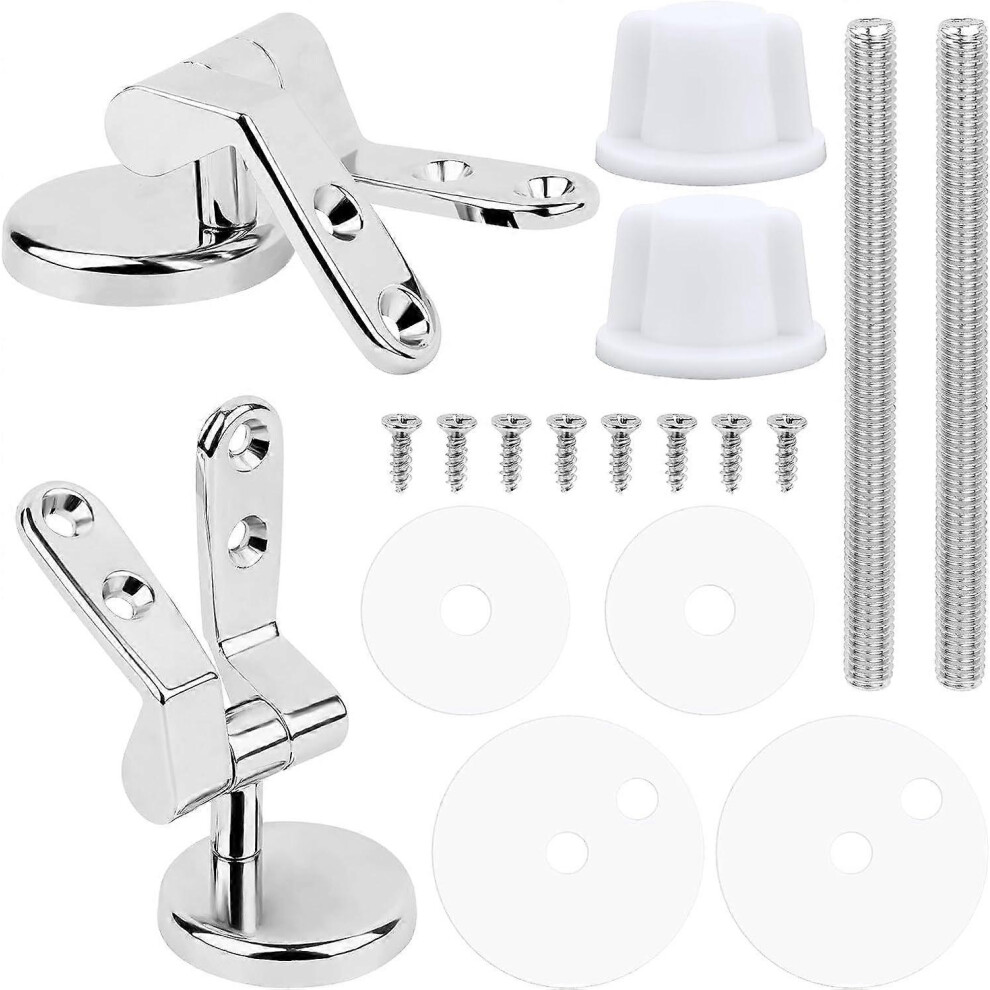 Toilet Seat Hinges and Fixing Kit With 47mm and 55mm Bolts, Rubber Washers, Mounted Screws, Replacement Hardware
