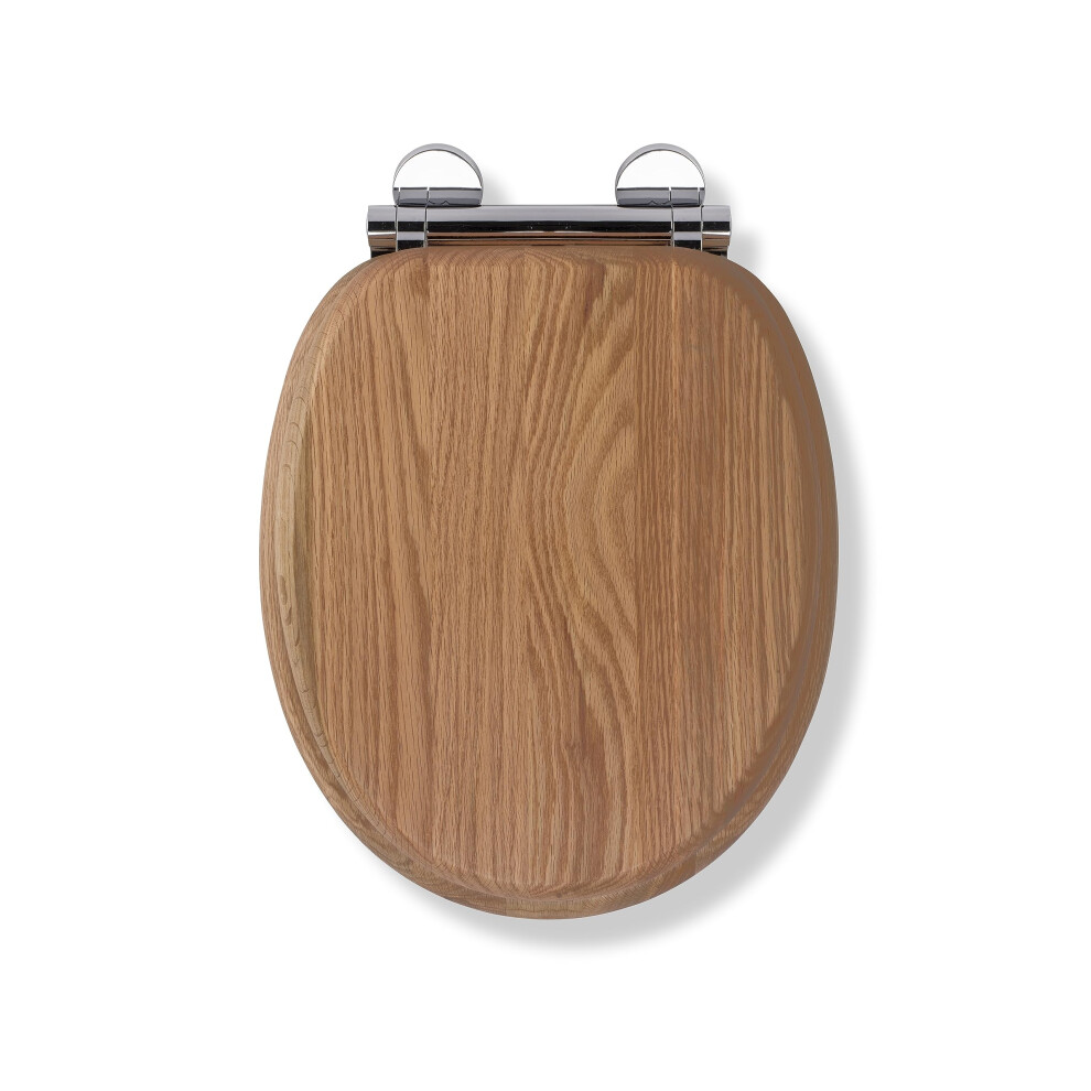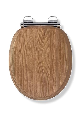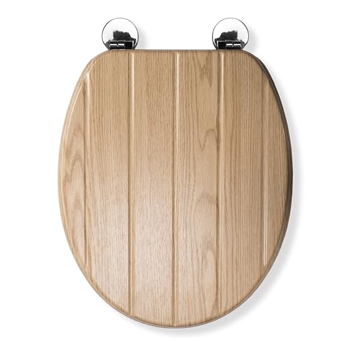Croydex Rutland Flexi-Fix Soft Close Wooden Toilet Seat - Quick Release Button for Easy Cleaning, Adjustable Hinges with Top and Bottom Fixings, Anti-Bacterial and Heavy Duty Toilet Seat (Solid Oak)