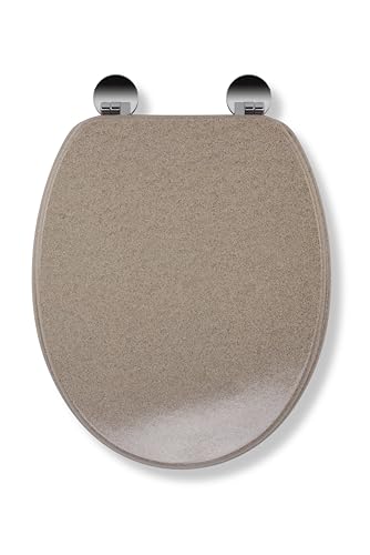 Croydex Dorney Flexi-Fix Wooden Toilet Seat - Adjustable Hinges with Top & Bottom Fixings Included and Rust Free Chrome Plated Hinge Covers, Antibacterial Treated Surface (Sandstone Effect)