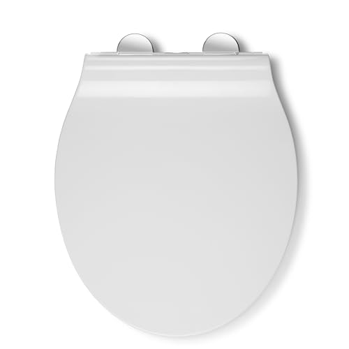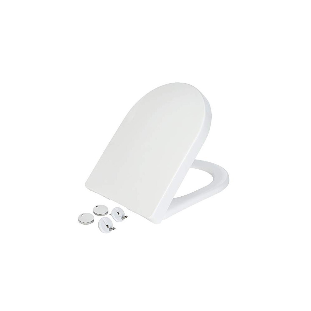 ZENO Soft Close Toilet Seat, Simple Metal Top Fixing, Heavy Duty UF Material Anti-Bacterial Toilet Seats White with Adjustable Metal Fixings, D