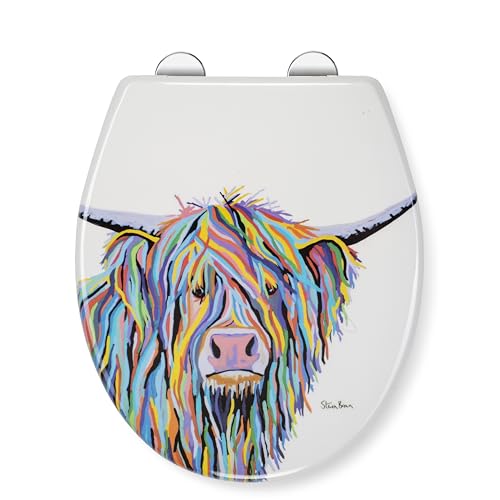Croydex Steven Brown Angus McCoo Flexi-Fix Soft Close Toilet Seat - with Quick Release with Adjustable Hinges, Durable Polypropylene Plastic with Top and Bottom Fixings (Highland Cow)