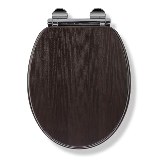 Croydex Molvena Wooden Toilet Seat - Adjustable Hinges with Top and Bottom Fixings Included and Rust Free Chrome Plated Hinge Covers, Antibacterial Treated Surface (Walnut Effect)