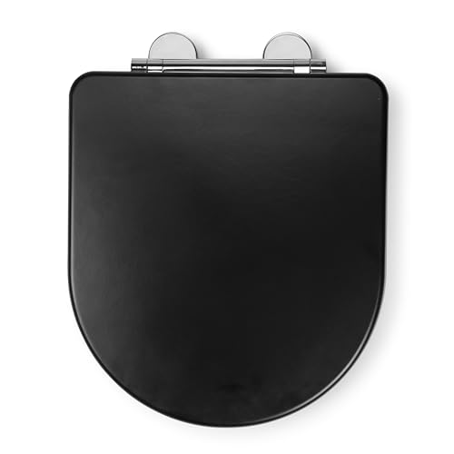 Croydex Black Quartz Flexi-Fix Toilet Seat - Adjustable Hinges with Top & Bottom Fixings Included and Rust Free Chromed Plated Hinge Covers, Antibacterial Treated Surface (Black)