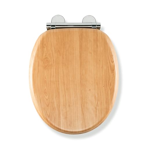 Croydex Davos Flexi-Fix Wooden Toilet Seat - Adjustable Hinges with Top & Bottom Fixings Included and Rust Free Chrome Plated Hinge Covers, Antibacterial Treated Surface (Blonded Pine)