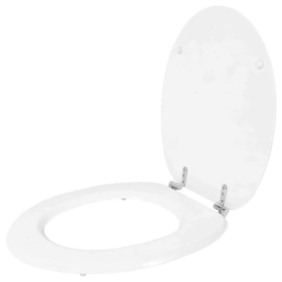 Anika Bathroom White MDF Toilet Seat Easy Fit with Top Fixings Hinges Fittings