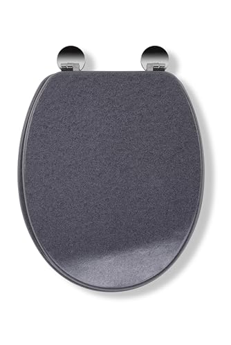 Croydex Flexi-Fix Silver Quartz Toilet Seat - Adjustable Hinges with Top & Bottom Fixings Include and an Antibacterial Treated Surface, Heavy Duty Wooden Toilet Seat
