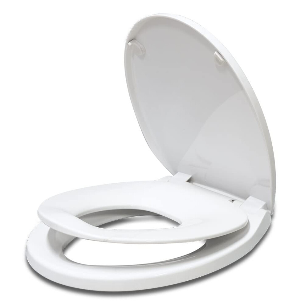 Ibergrif M41002-2 O Shape Family Toilet Seat with Child Seat Built-in, Soft Close Toilet Seat, Removable Potty Training Toilet Seat for Toddler with