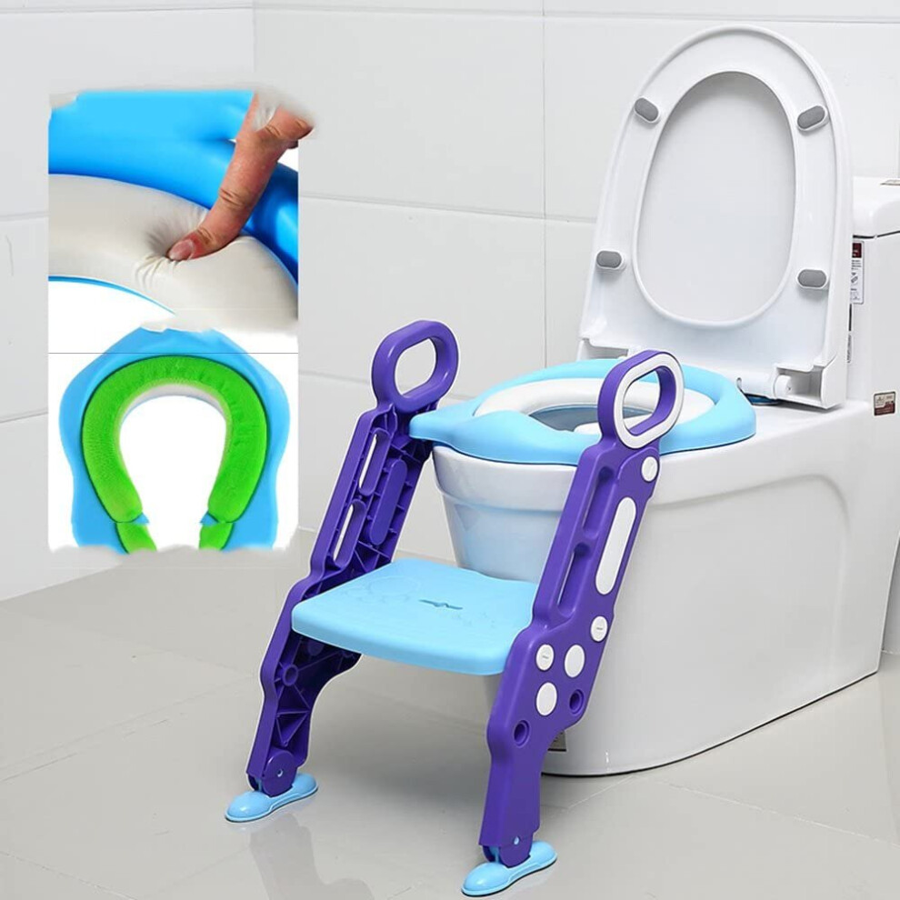Kids Toilet Training Seat Step, Training Seat Ladder Toilet Boys Girls-Blue