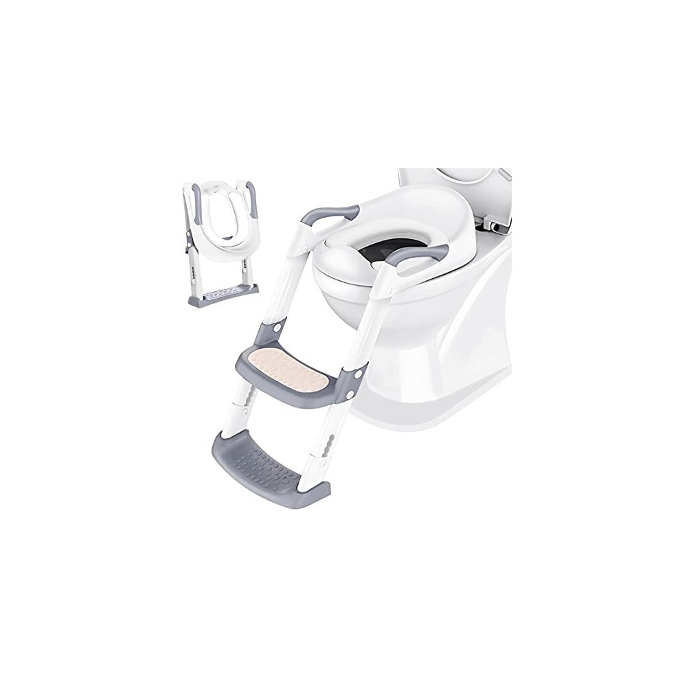 Potty Training Toilet Seat Trainer: Kids Toilet Training Seat with Step Stool - Foldable Portable Potty Chair with Adjustable Height Ladder Guard