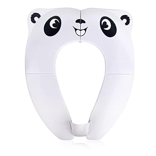 Pejoye Travel Toddler Toilet Seat, Portable Toilet Training Seat for Kids, Foldable Toilet Seat Toddler in ABS Material with 8 Anti Slip Silicon Pads and 1 Carry Bag, White Panda