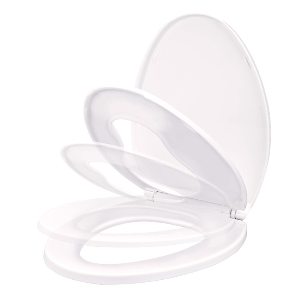 Elongated Soft Close Toilet Seat with Builtin Potty Training Seat, 2 in 1 White Resin Oval