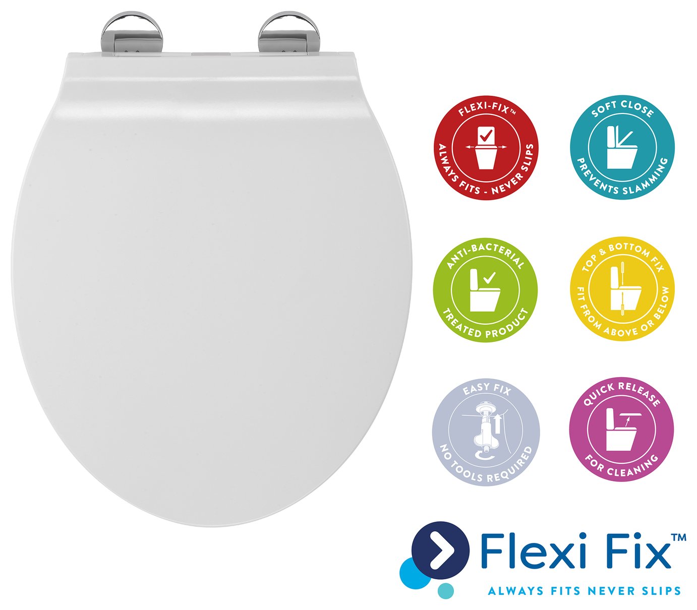 Croydex Flexi-Fix Slow Close Constance Toilet Seat - White