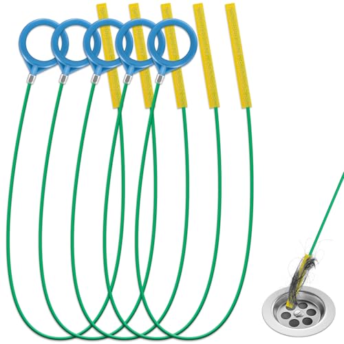 MOXYOY Drain Snake Sink Unblocker Tools, 5 Pack Metal Sink Snake, 90 cm Drain Cleaner and Plug Hole Cleaning Brush, Hair Clog Remove for Bathroom, Kitchen, Toilet, Drains and Sinks