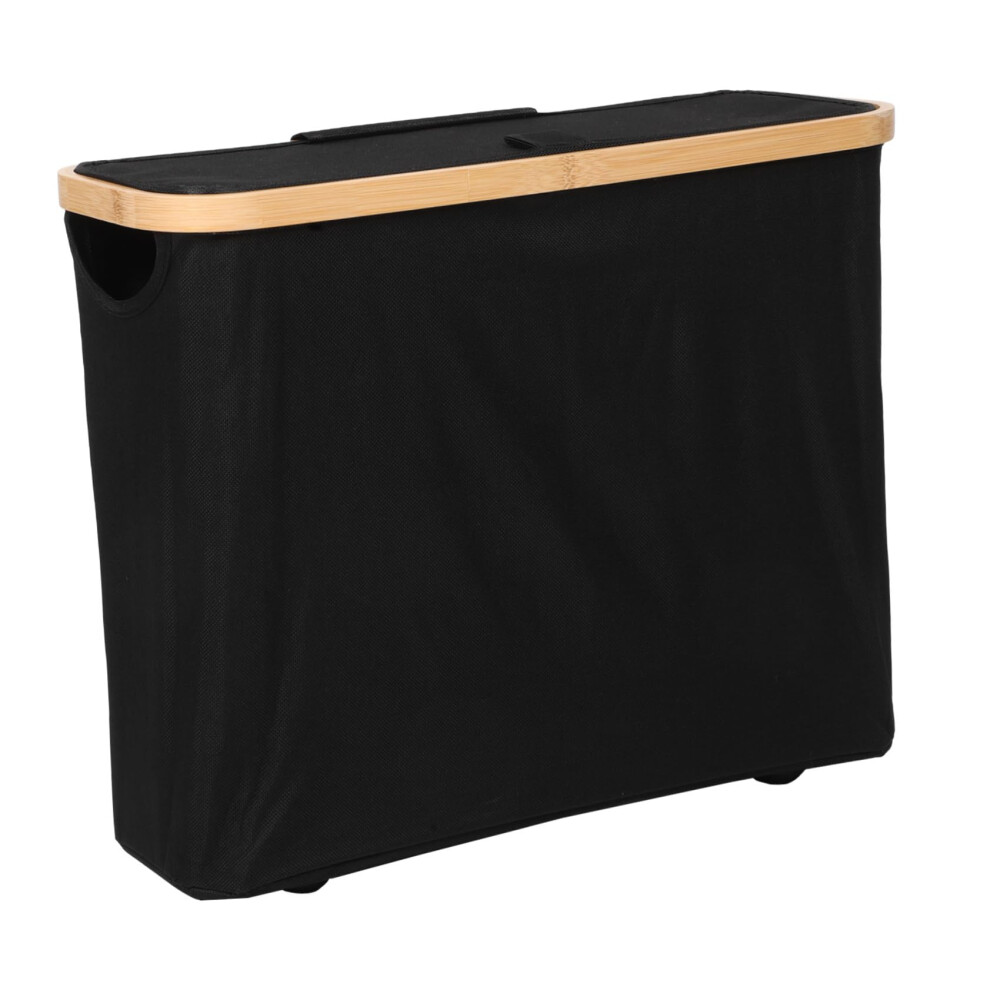 Toilet Paper Storage Basket, Woven Toilet Tank Basket, Tissue Holder, Wooden Handles, Black, Office Drawer Organizer