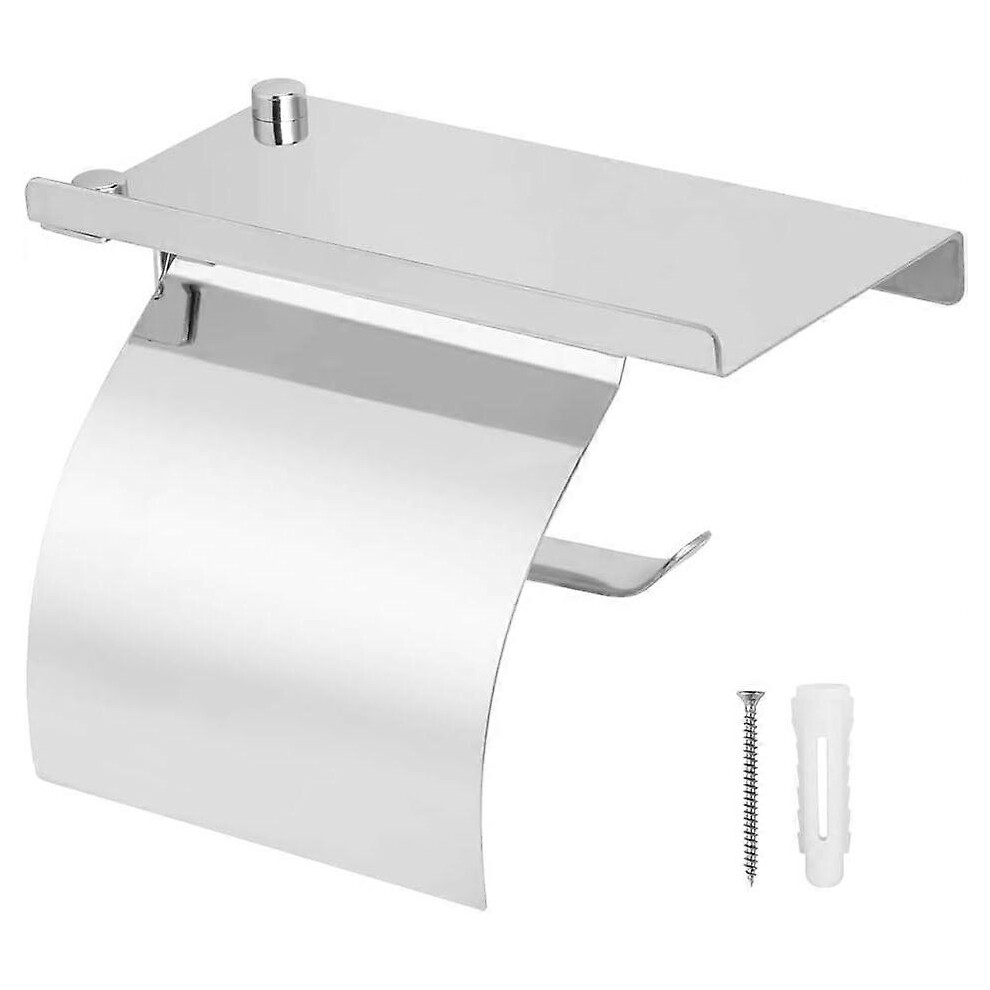 (As show, One size) Bathroom WallMounted Tissue Holder Stainless Steel Toilet Roll Paper Rack Paper Towel Holder with Cover Wall Mount 2-in-1 Basket O