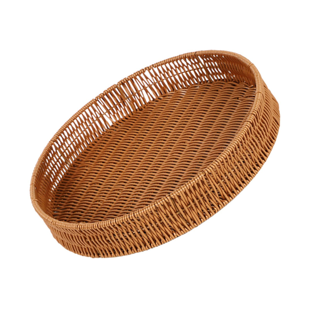 (Brown, Round L) Hand Woven Tray Tissue Toilet Basket DIY Crafts Storage Solution For