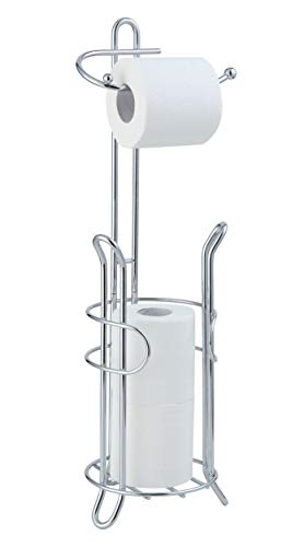 axentia Ravallo Chromed Metal Toilet Roll Storer for 4 Spare Rolls, Freestanding Toilet Paper Tissue Roll Holder, Bathroom 4 Roll Storage, Kitchen Roll Holder Stand, approx. 14 x 14 x 51.5 cm High, Silver