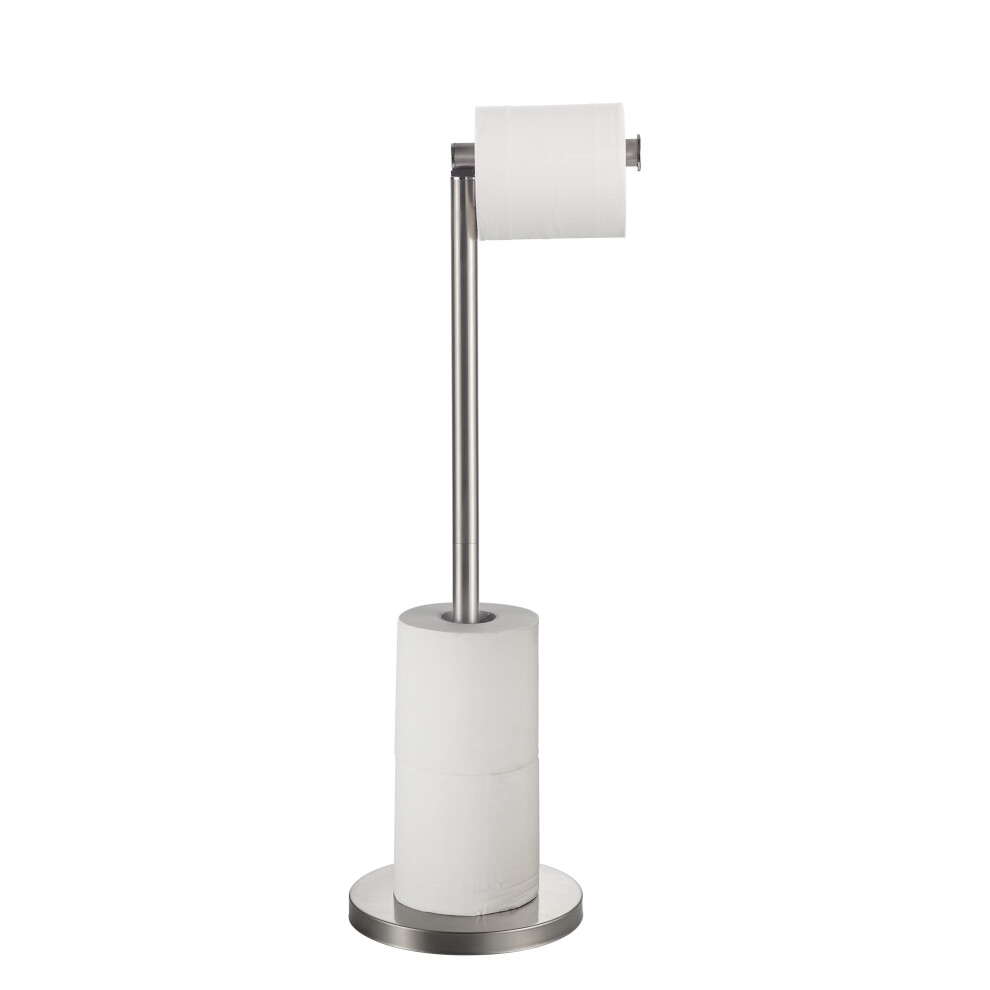 SunnyPoint Deluxe Free Standing Heavy Weighted Toilet Tissue Paper Roll Holder Stand (Brushed Nickel)