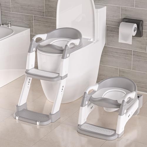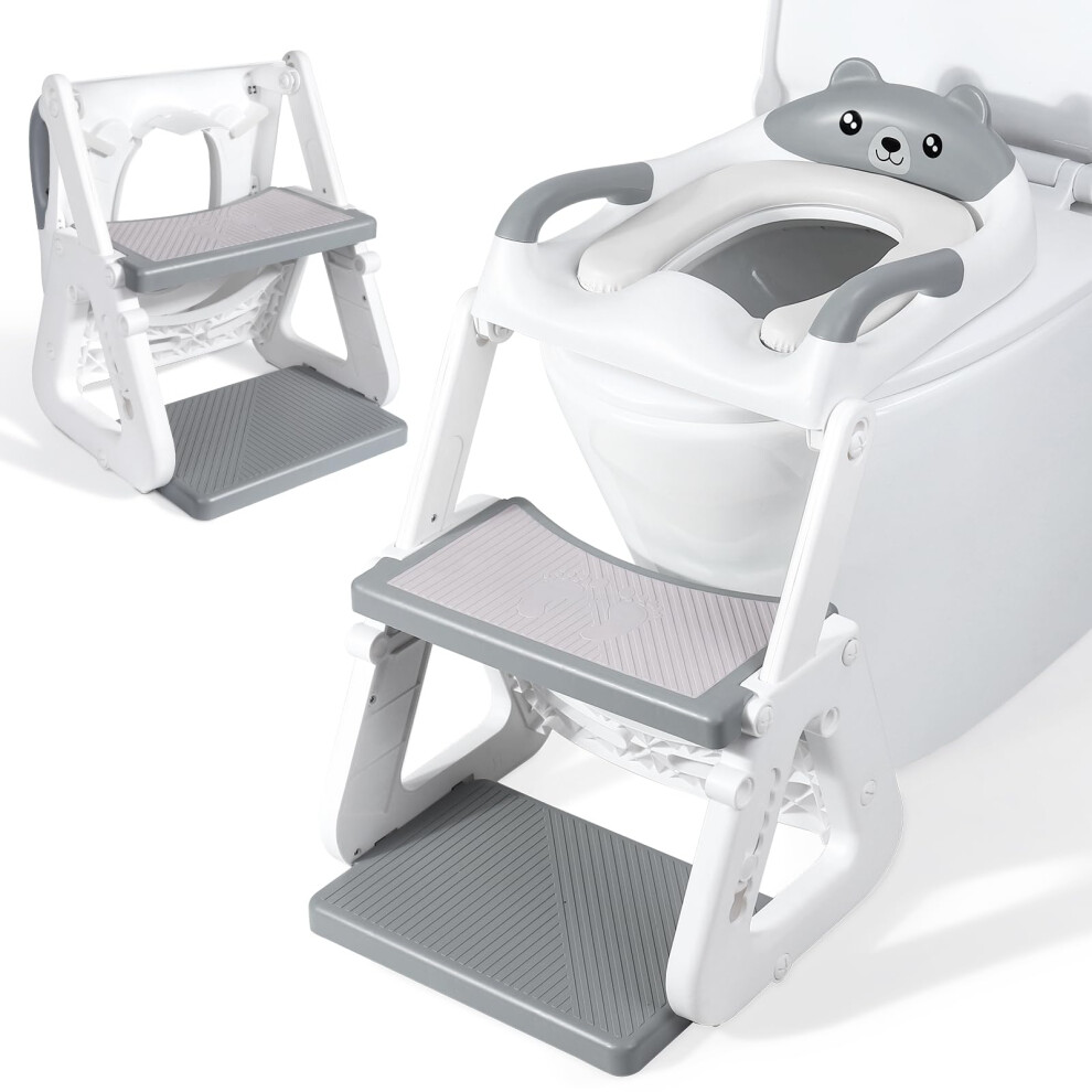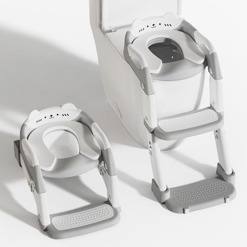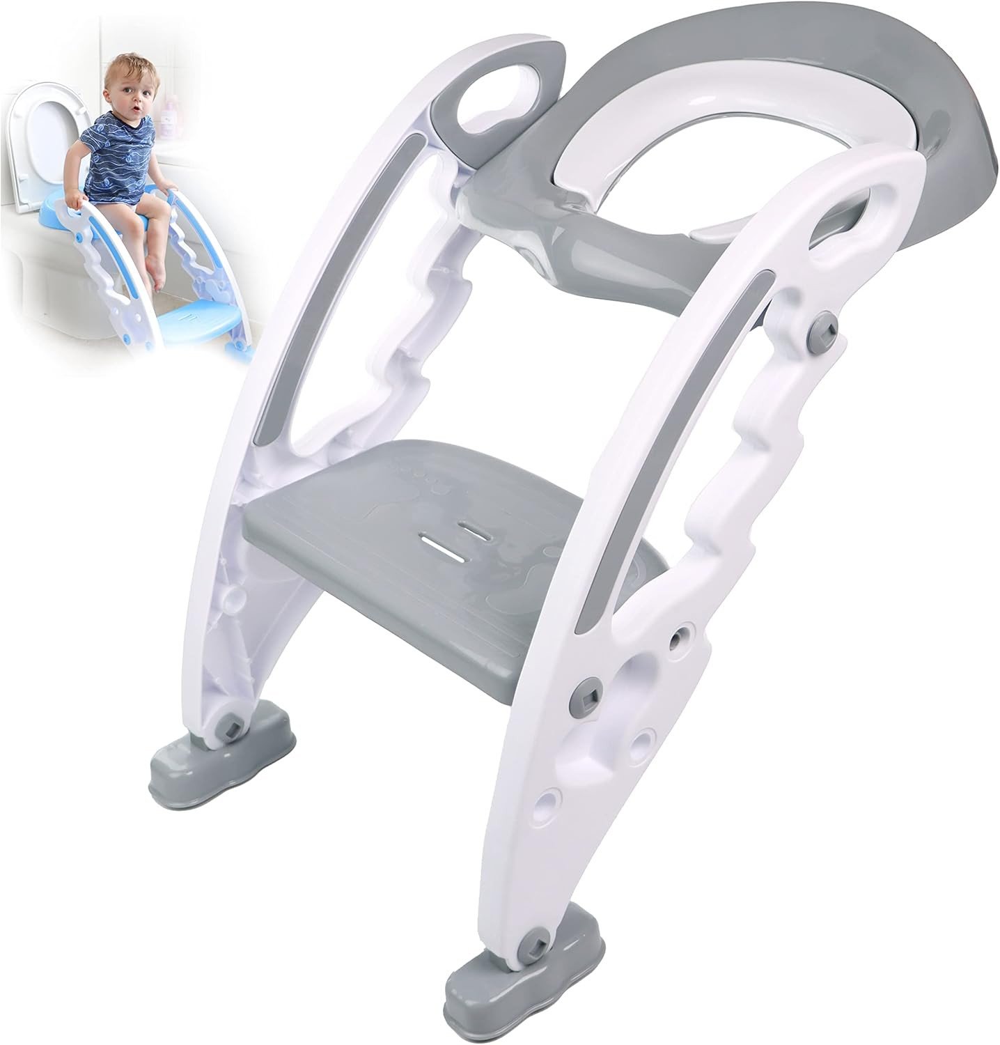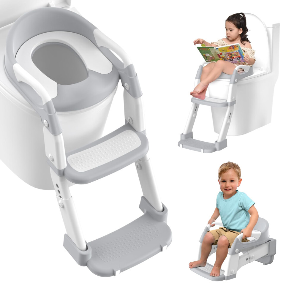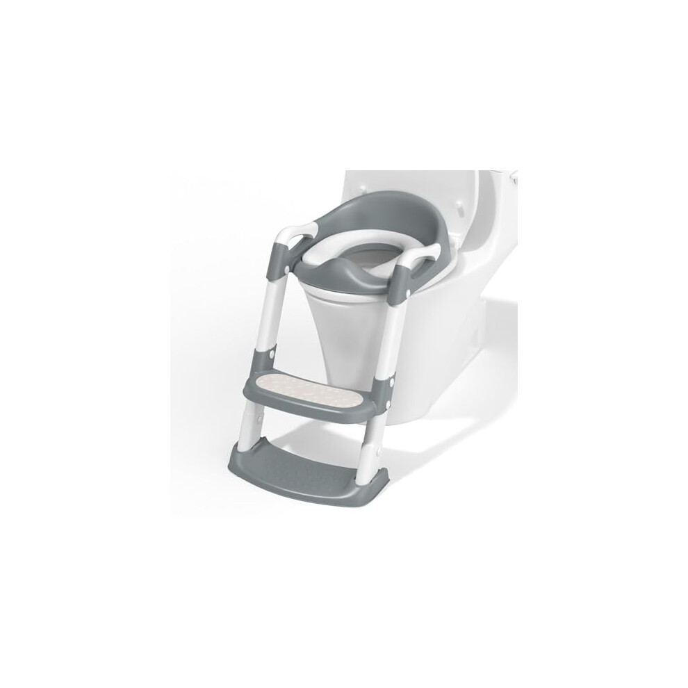 KIDOOLA Adjustable Potty Ladder Seat for Toilet Training with Steps,Handle & Soft Cushion Design Non Slip & Space Efficient Toddlers & Children Foldable & Easy Assembly Splash Guard Included Grey