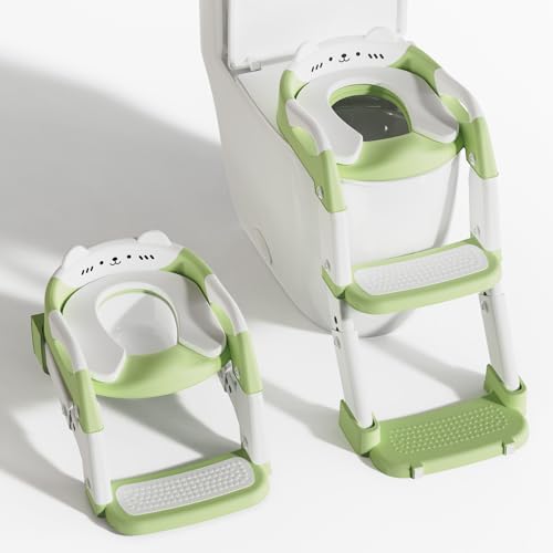 Potty Training Toddler Toilet Seat,Upgrade 3 in 1 Steps Stool,Multi-Functional Splash-Proof Guard,Foldable for Kids Boys Girls,Adjustable Toilet seat Toddler in Bathroom(Green)