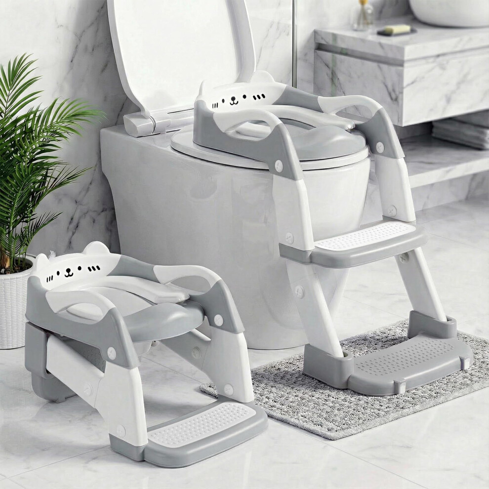 Adjustable Potty Ladder Seat for Toilet Training with Steps, Handle & Soft Cushion Design Non Slip & Space Efficient