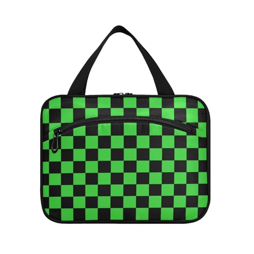 sanluoli Buffalo Plaid Check Blackime Green hanging mens toiletry bag with hook, designer compact kit bag for mom toilet bolso de para mujer, buffalo plaid check black lime green