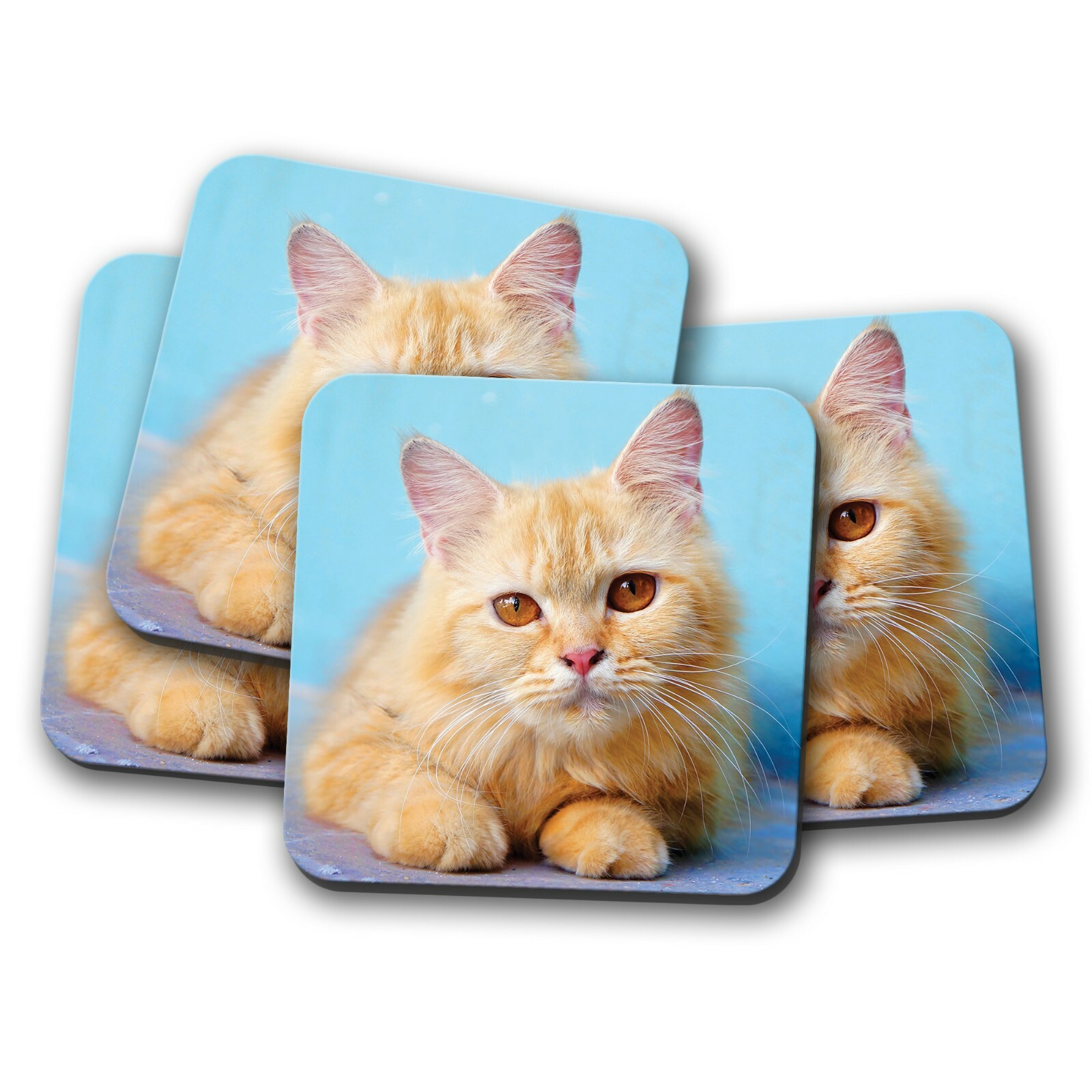 4 Set - Ginger Tom Cat Coaster - Kitten Cute Cats Pretty Pets Animal Gift #15270