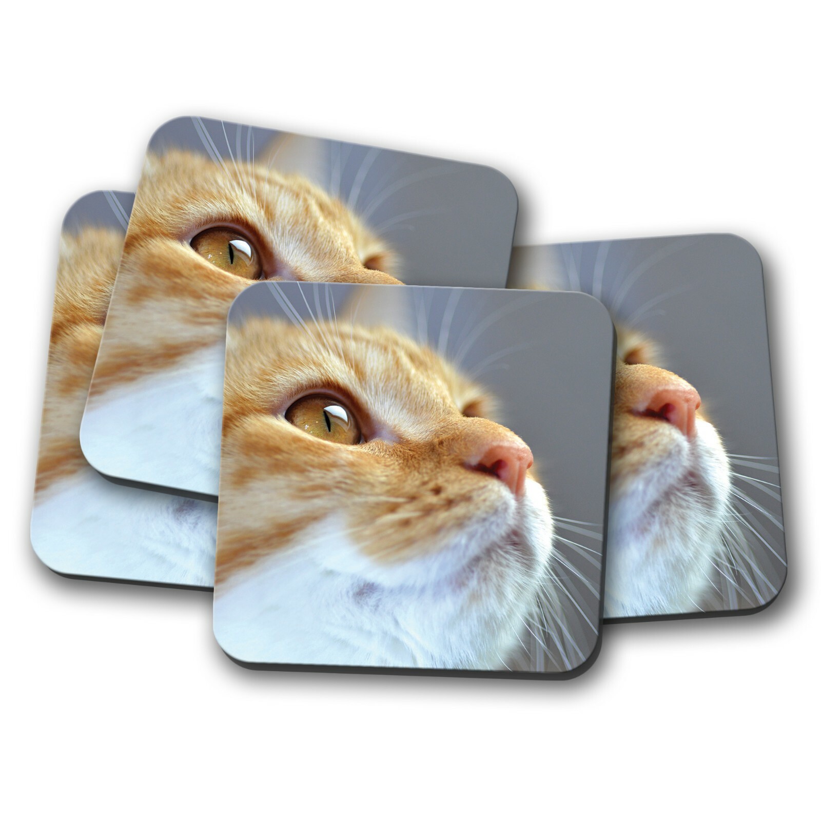 4 Set - Adorable Ginger Tom Cat Coaster - Kitten Cats Yellow Eyes Gift #16880