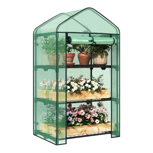 DIVCHI Greenhouse Garden Tomato Growhouse Vegetables Grow Tent Green House With Roll-Up Door Reinforced Cover & Heavy Duty Frame