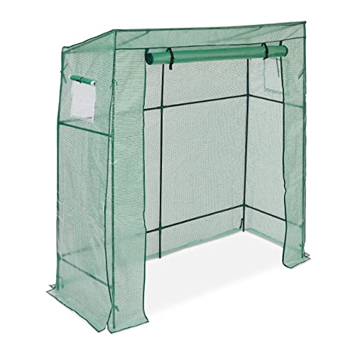 Relaxdays Large Tomato Greenhouse, Sloping Roof, Zipper Door, 2 Side Windows, PE Cover, HxWxD: 197 x 197 x 77 cm, Green, Iron