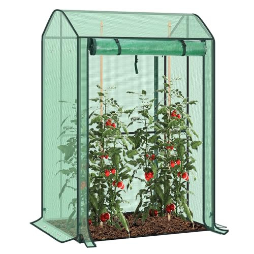 Outsunny 100 x 50 x 150cm Tomato Greenhouse Steel Frame PE Cover with Roll-up Door Outdoor for Backyard, Balcony, Garden, Green