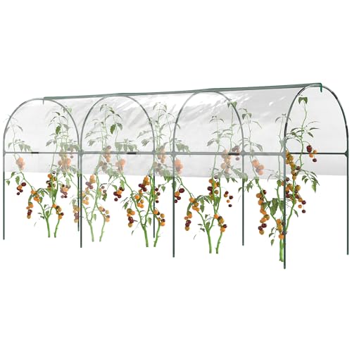 Outsunny Tunnel Tomato Greenhouse With 4 Hoops And Top Tap, Pointed Bottom And Guy Ropes, Clear