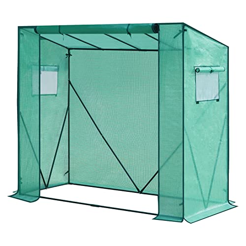 Outsunny 200x76x168cm Walk-in Garden Greenhouse Patio Lean To Hot House, Plants Flowers Herbs Tomato Grow W/ Steel Frame Door Window Balcony Patio