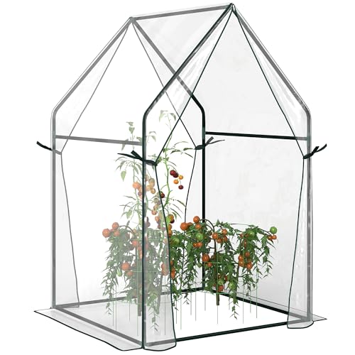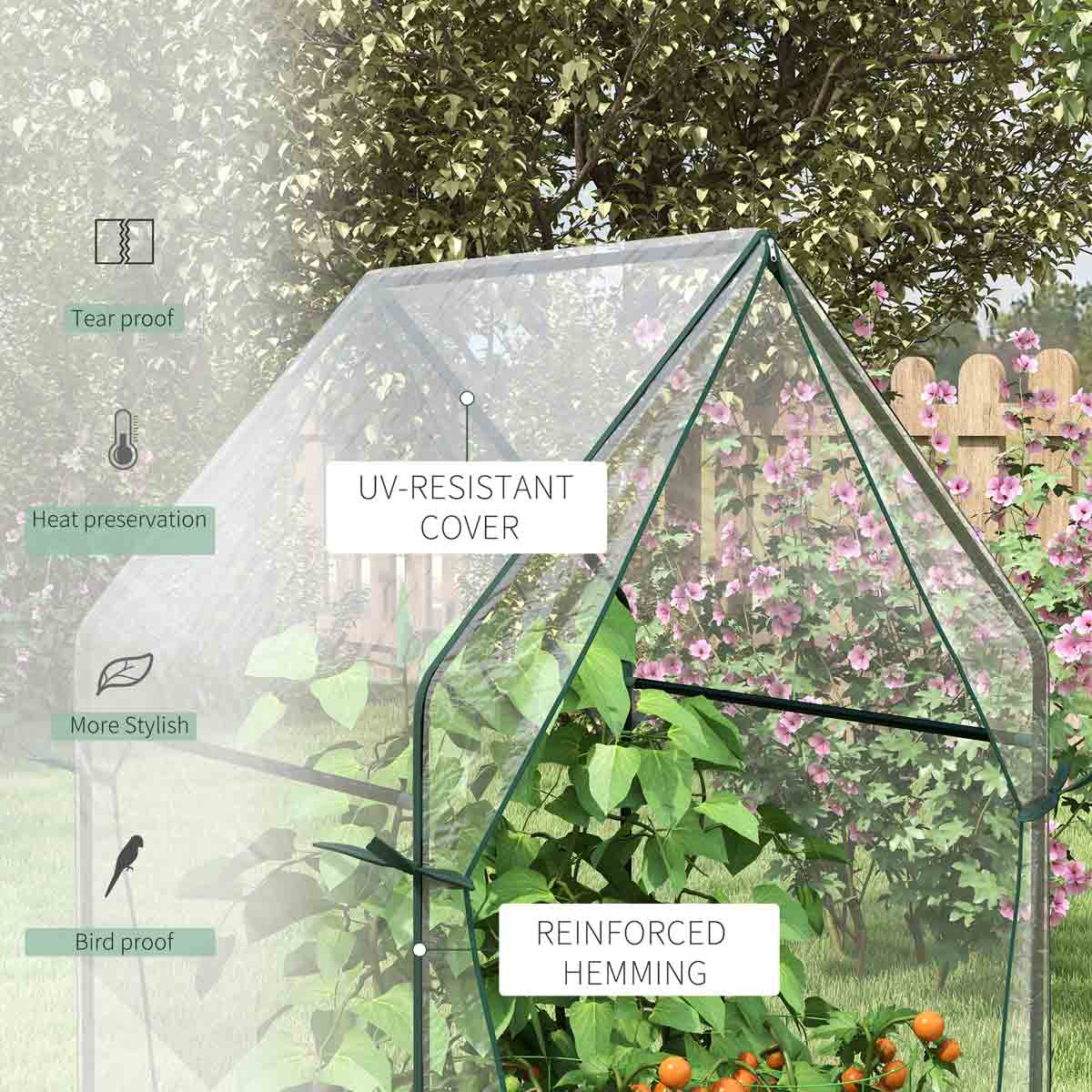 Outsunny Mini Greenhouse, Garden Tomato Growhouse with 2 Zipped Doors, Portable Indoor Outdoor Green House, 90 x 90 x 145cm, Clear