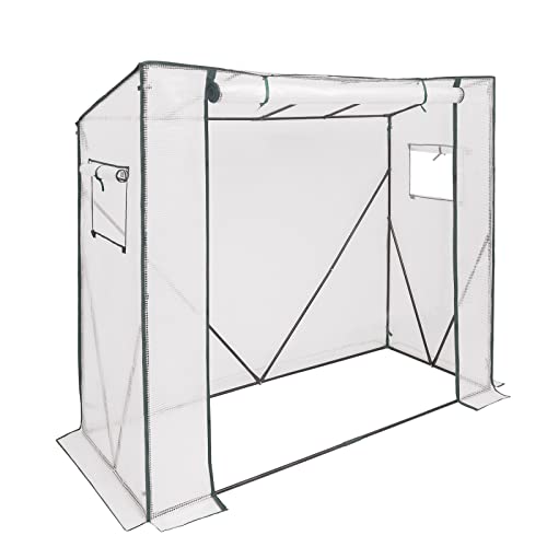 WOLTU Greenhouse - Outdoor Walk-in Garden, 200x77x146/169cm, Tomato Greenhouse Roll-up Doors & 2 Windows, 4 Ground Pegs, Weatherproof Multi-purpose Metal Frame White