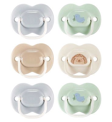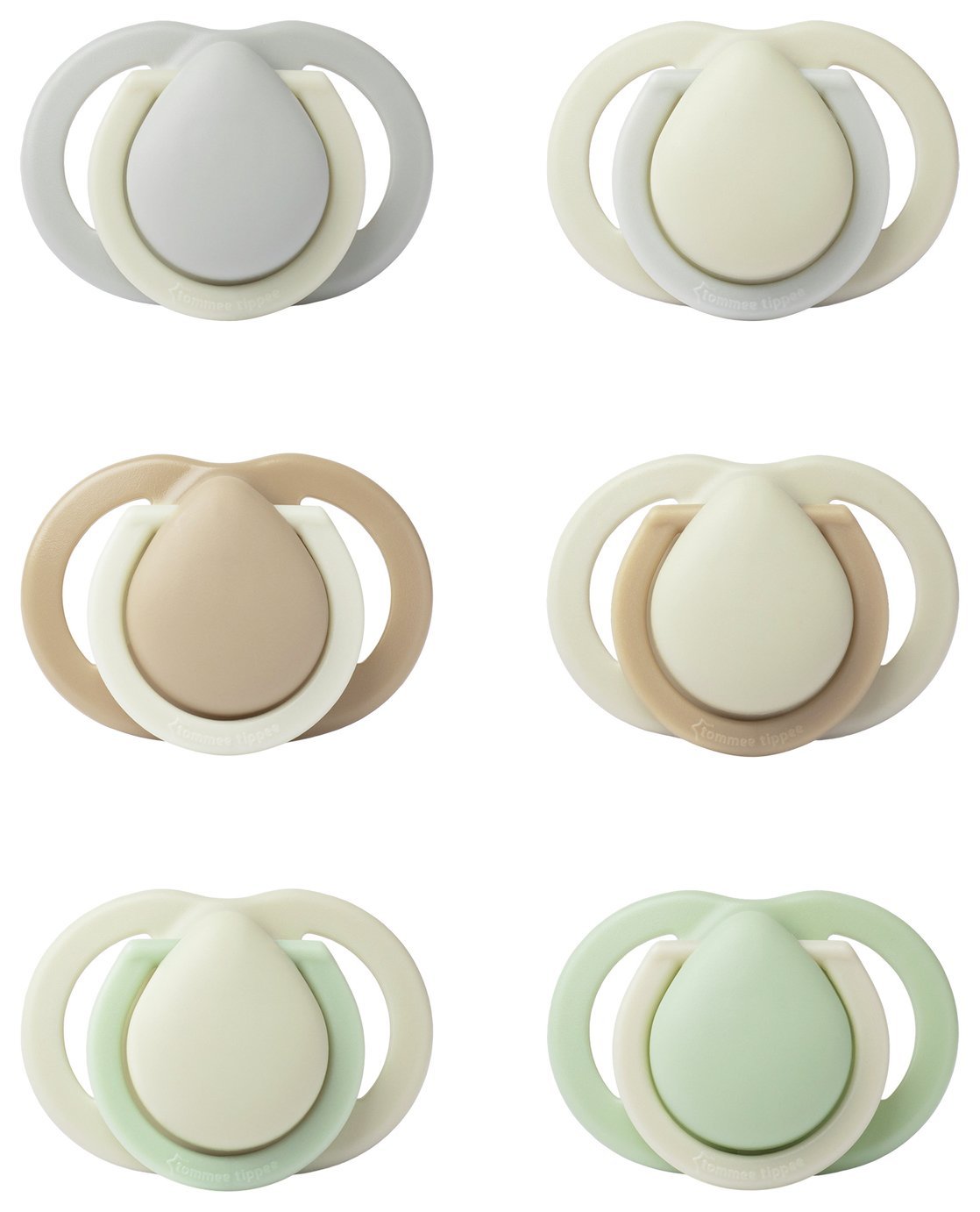 Tommee Tippee Anytime Soothers, 0-6m, 6 Pack, Symmetrical Teat Sits Anyway