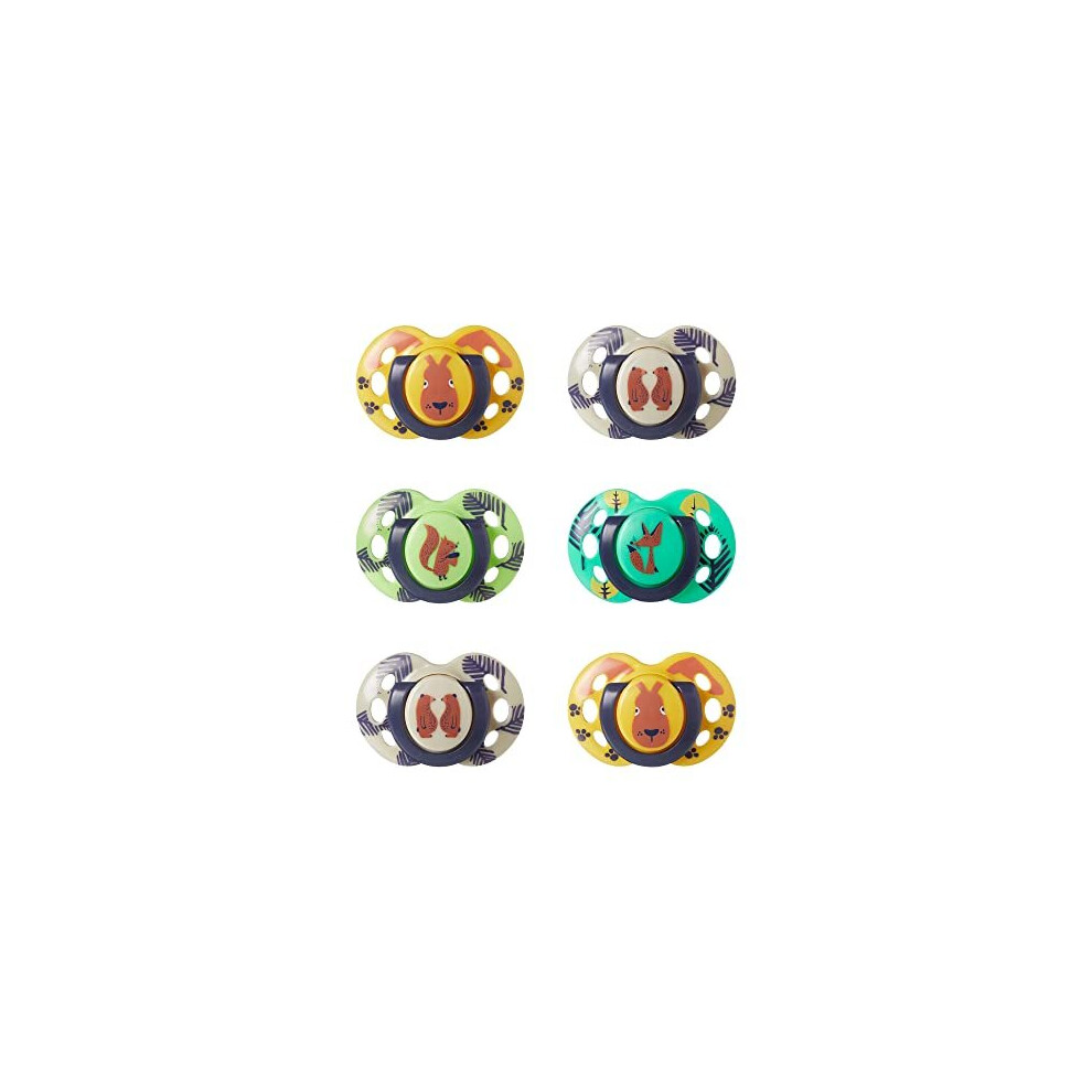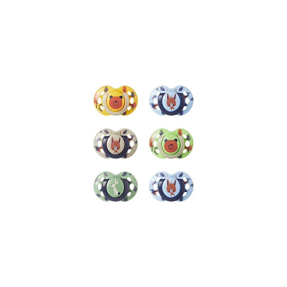 Tommee Tippee Night Time Soothers, 18-36m, Pack of 6 Dummies, Symmetrical Orthodontic Design, BPA-Free Silicone Baglet