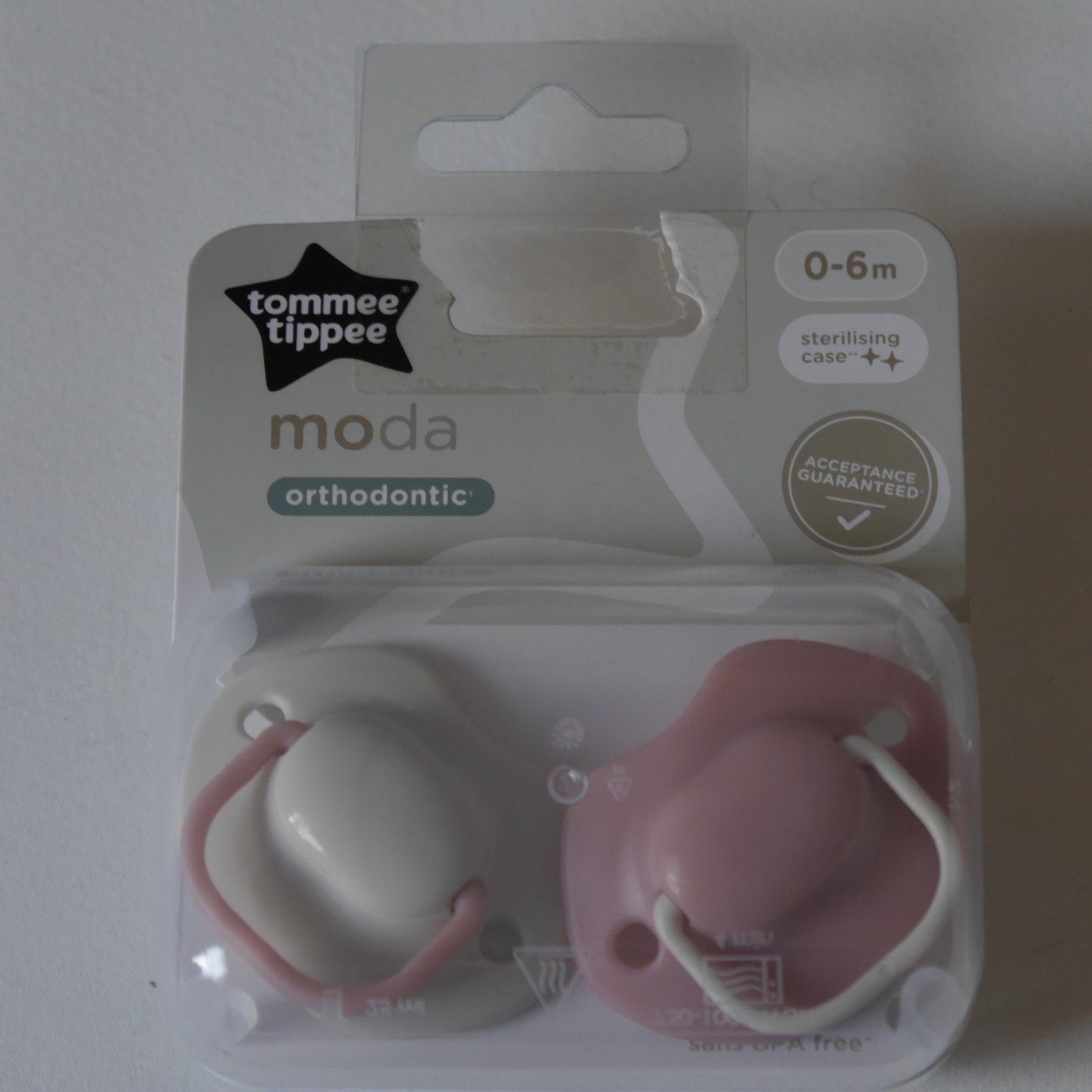 Tommee Tippee Moda Orthodontic Soothers 0-6 Months #1 pink & white #D