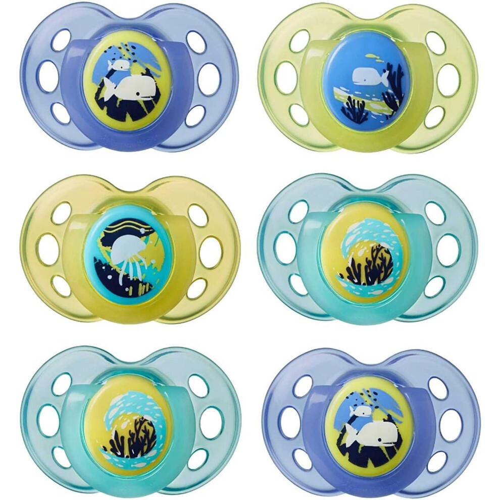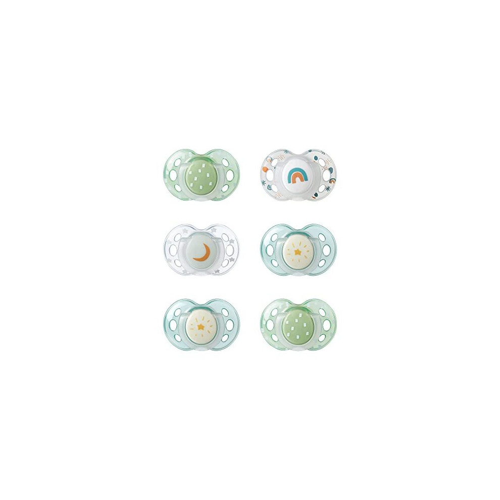 Tommee Tippee Night Time Soother, 0-6m, 6 Pack, Glow in The Dark Soothers