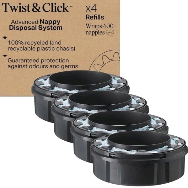 Tommee Tippee Twist and Click Advanced Nappy Bin Original Refill Cassettes, Exclusive Pack of 4, for Easy refill Great value (pack may vary)