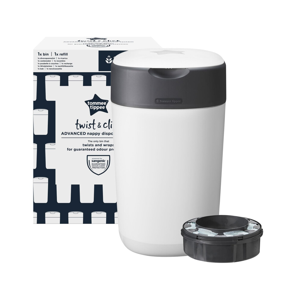 Tommee Tippee Twist and Click Advanced Nappy Bin Eco-Friendlier System Includes 1x Refill Cassette with Sustainably Sourced Antibacterial GREENFILM