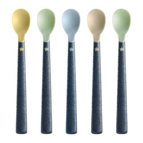 Tommee Tippee Softee Weaning Spoons 4+ Months, 5 Pack, Long Anti-Slip Handles, Super Soft Tip, BPA-Free Baby Spoons