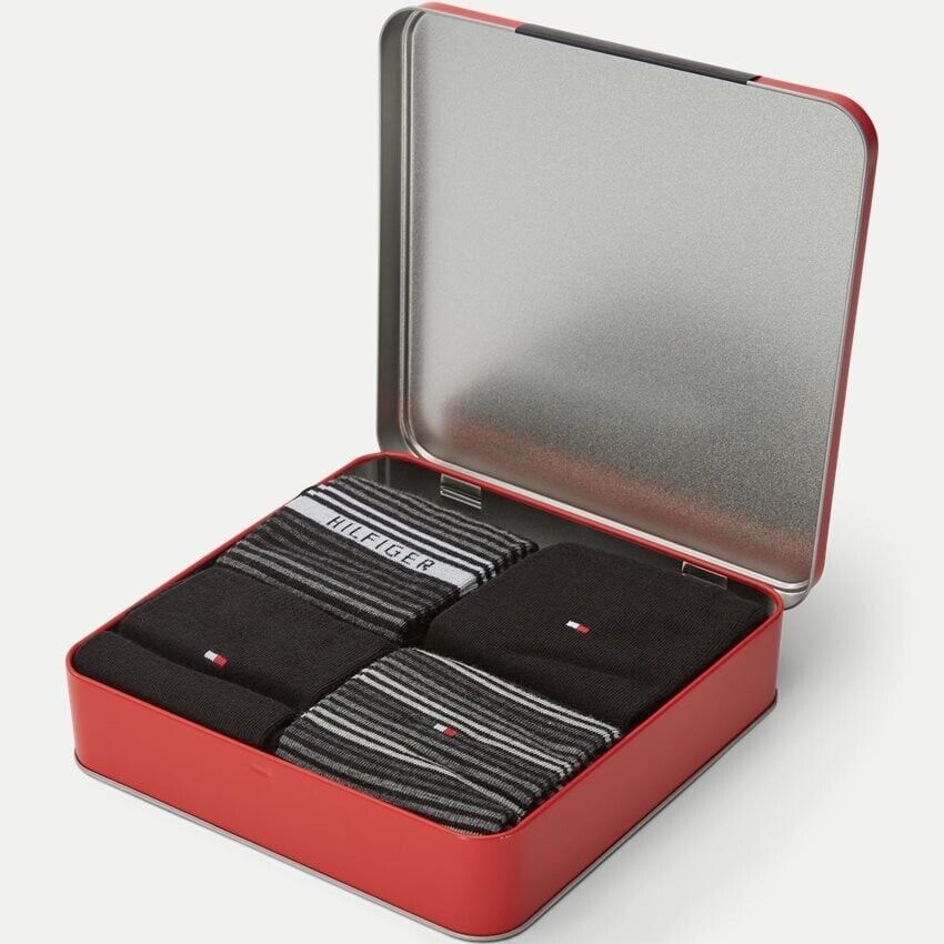 Tommy Hilfiger Men's Gift Box Tin- 4 Pairs Socks, Black, UK 6-11, Premium Set