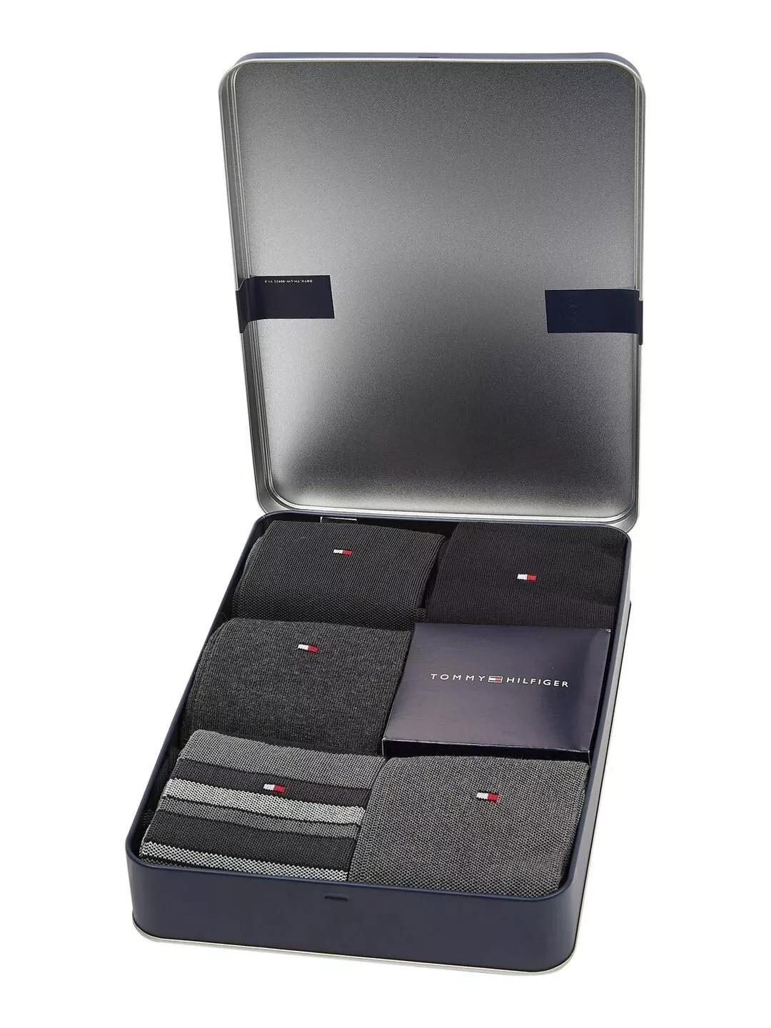 Tommy Hilfiger Men's Gift Box Tin 5 Pairs Socks, Black Grey, UK 6-11 Premium Set