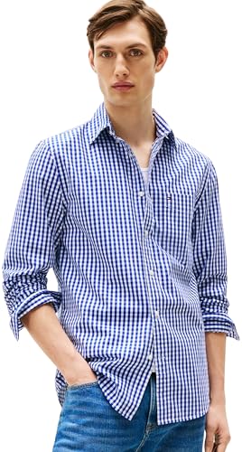 Tommy Hilfiger Men’s Poplin Gingham Cotton Shirt, Multicolor (Wedge Blue/Check), S