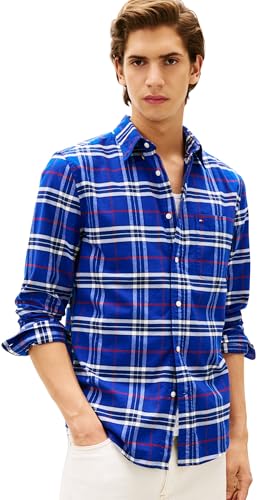 Tommy Hilfiger Men’s Brushed Oxford Check Regular Fit Shirt, Multicolor (Wedge Blue/Check), XL