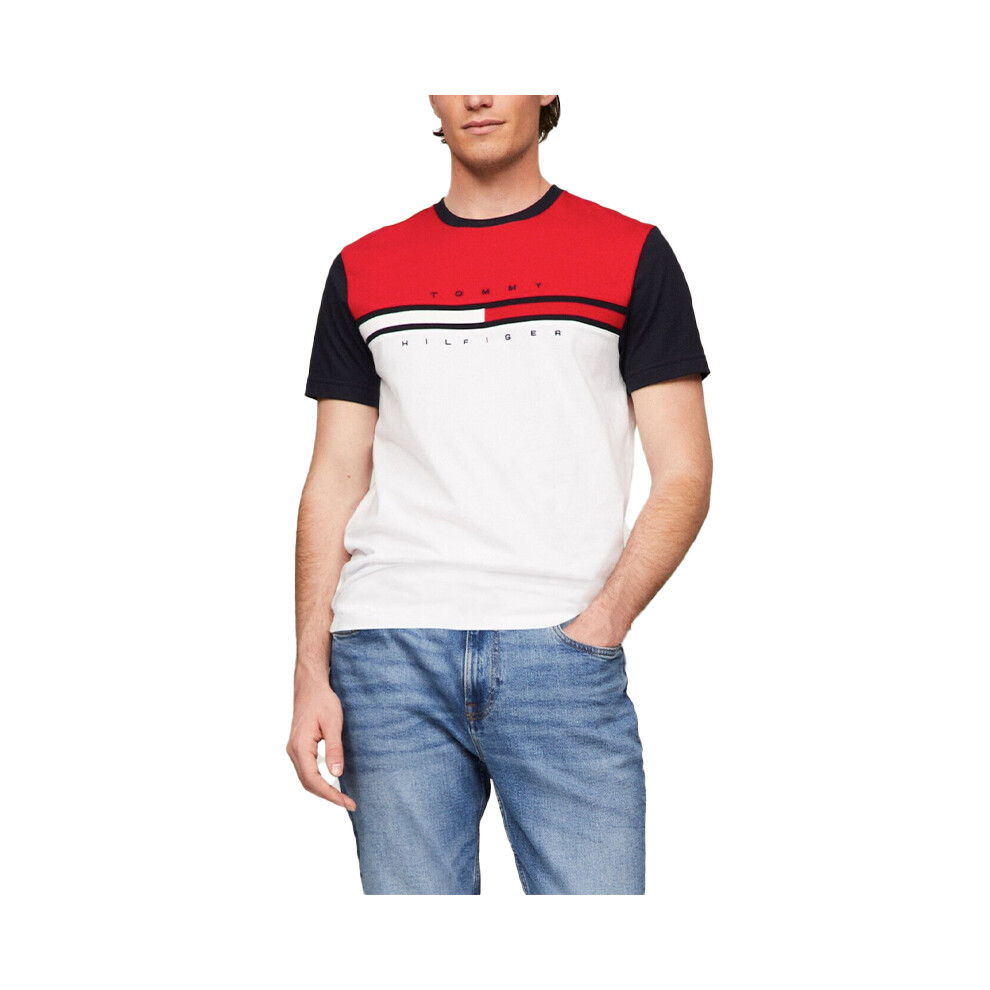 Tommy Hilfiger Mens T Shirt Colorblock Flag Casual Tee - White/Red Cotton - Size Medium