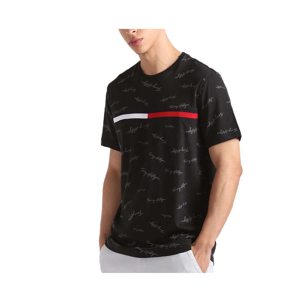(Black, M) Tommy Hilfiger Mens T Shirt Signature Tee