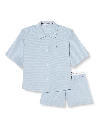 Tommy Hilfiger Women's Short Sleeve Linnen Pj Set Uw0uw04519 Pyjamas, Blue (Horizon Stripes Blue), L