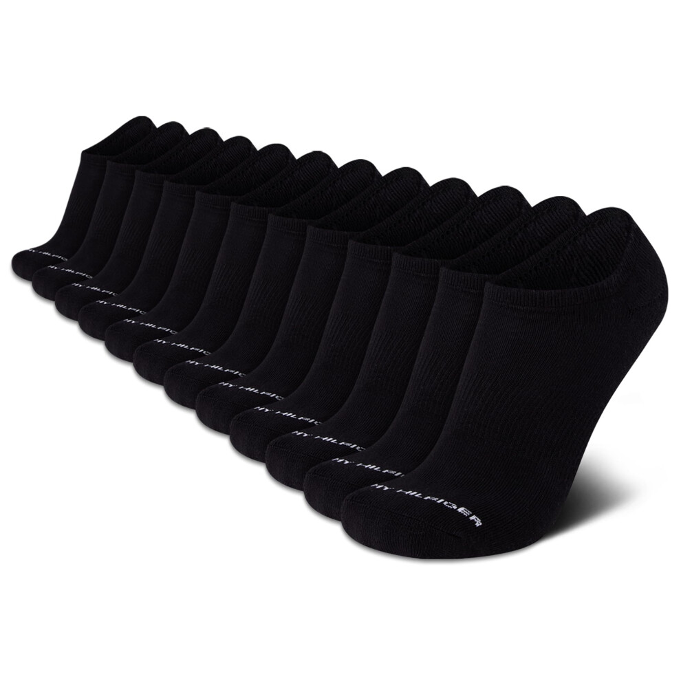 Tommy Hilfiger Men's Athletic Socks - Cushion No Show Socks (12 Pack), Size 7-12, Black Logo